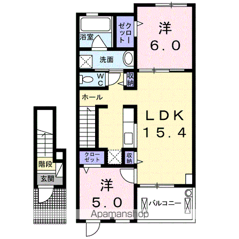 アパート ミレニアムコート(2LDK/2階) | |||||||