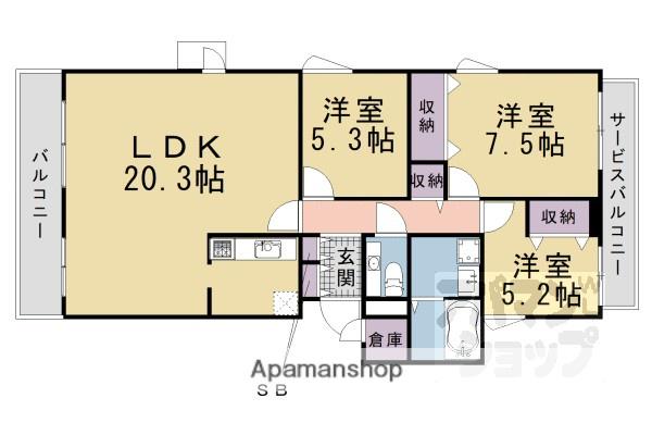 | 間取り詳細 | LDK(20.3帖)、洋室(7.5帖)、洋室(53帖)、洋室(5.2帖) | ||
