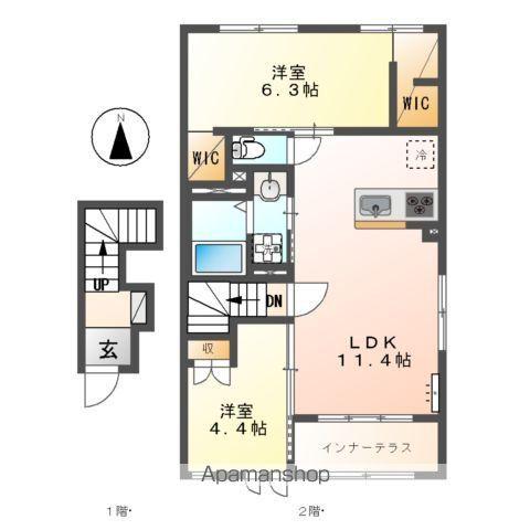 | 間取り詳細 | LDK(11.4帖)、洋室(6.3帖)、洋室(4.4帖) | ||