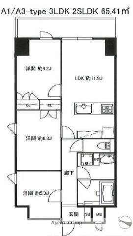 | 間取り | 3LDK | 専有面積 | 65.41m2 |