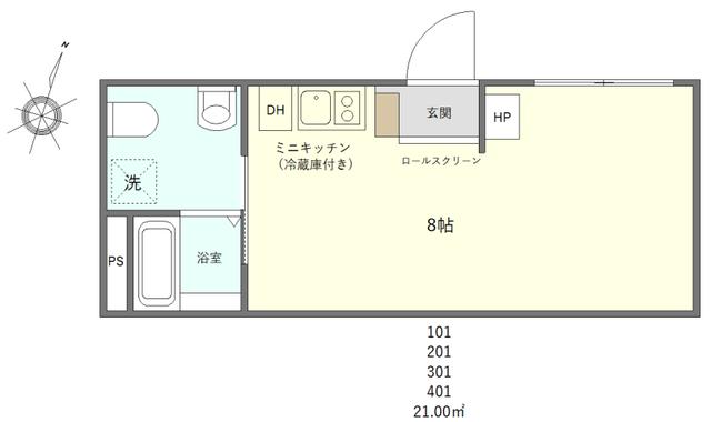 | 間取り | ワンルーム | 専有面積 | 21m2 |