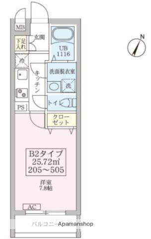 | 間取り | 1K | 専有面積 | 25.72m2 |