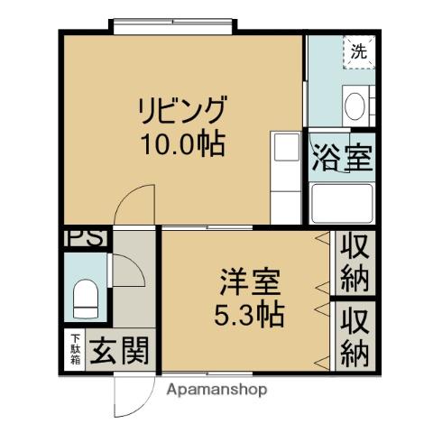 | 間取り詳細 | DK(10帖)、洋室(5.3帖) | ||
