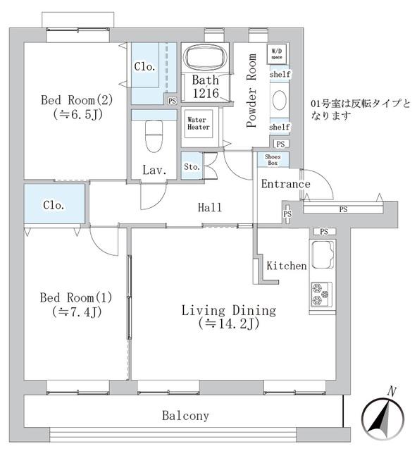 | 間取り詳細 | LDK(14.2帖)、洋室(7.4帖)、洋室(6.5帖) | ||