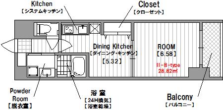 | 間取り | 1DK | 専有面積 | 28.82m2 |