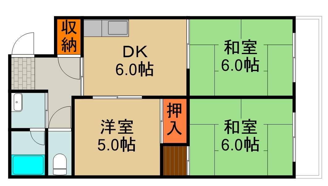 | 間取り詳細 | DK(6帖)、和室(6帖)、和室(6帖)、洋室(6帖) | ||