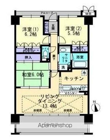 | 間取り詳細 | LD(13.4帖)、洋室(6.2帖)、洋室(5.5帖)、和室(6帖) | ||
