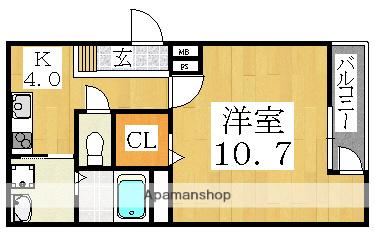 | 間取り詳細 | 洋室(10.7帖)、K(2帖) | ||