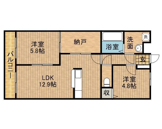 | 間取り詳細 | 洋室(5.8帖)、洋室(4.8帖)、LDK(12.9帖)、S(3.6帖) | ||