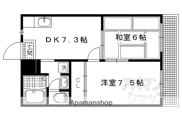 | 間取り詳細 | DK(7.3帖)、和室(6帖)、洋室(7.5帖) | ||