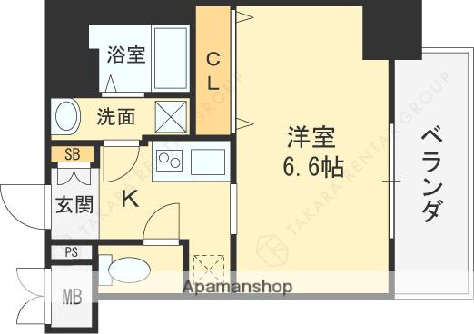 | 間取り詳細 | 洋室(6.6帖)、K(2帖) | ||