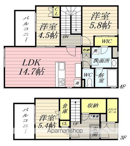 | 間取り詳細 | LDK(12.7帖)、洋室(5.4帖)、洋室(6.1帖)、洋室(5.8帖) | ||